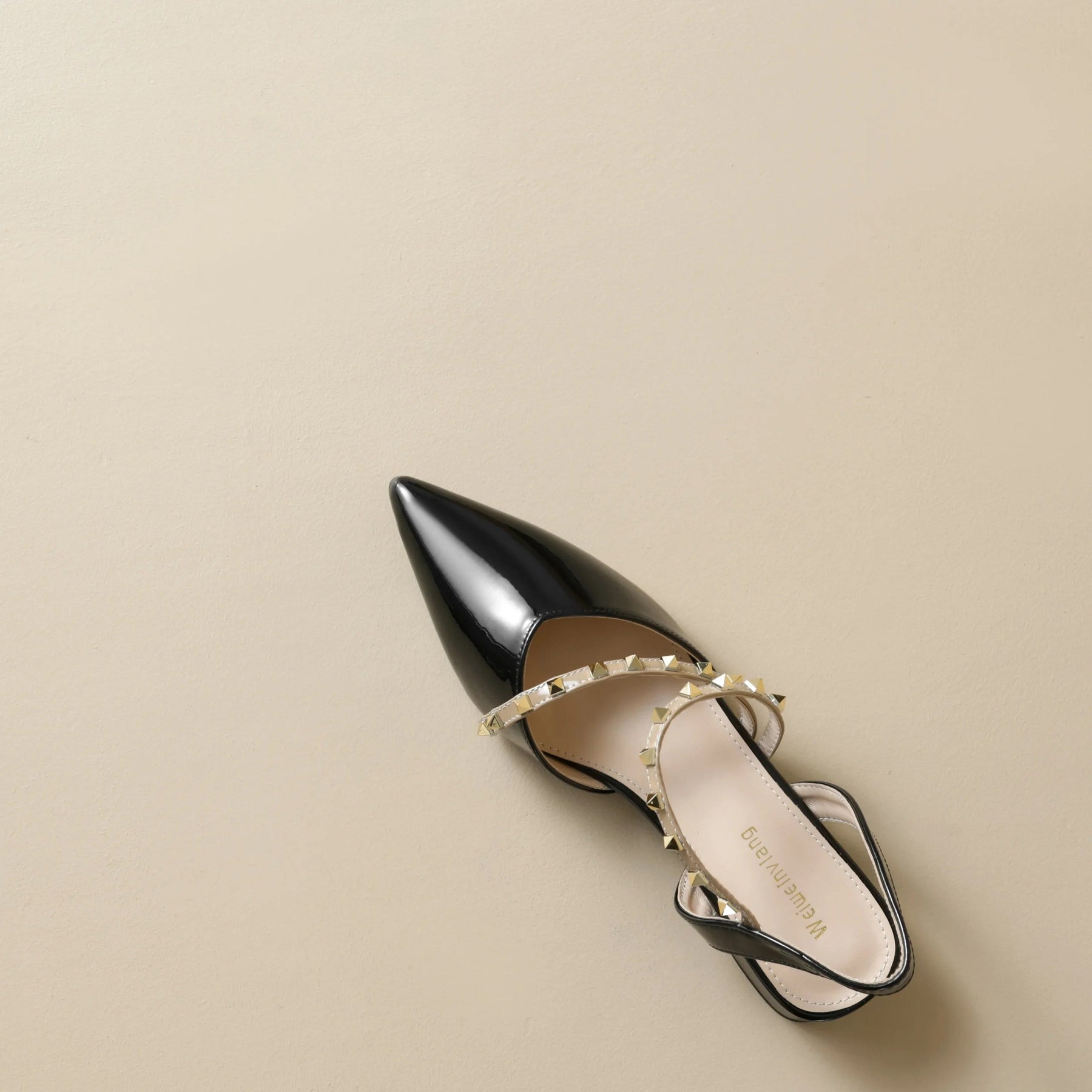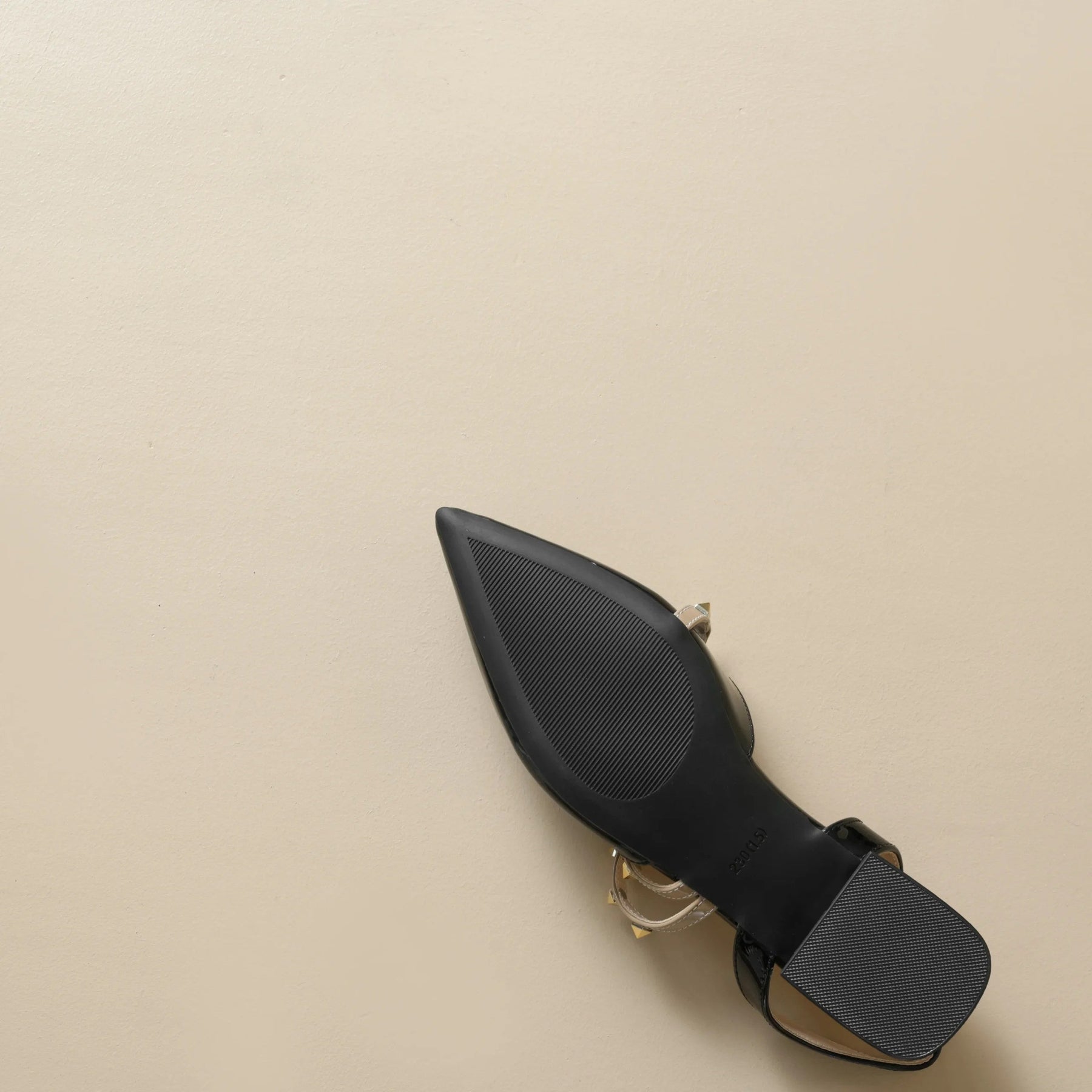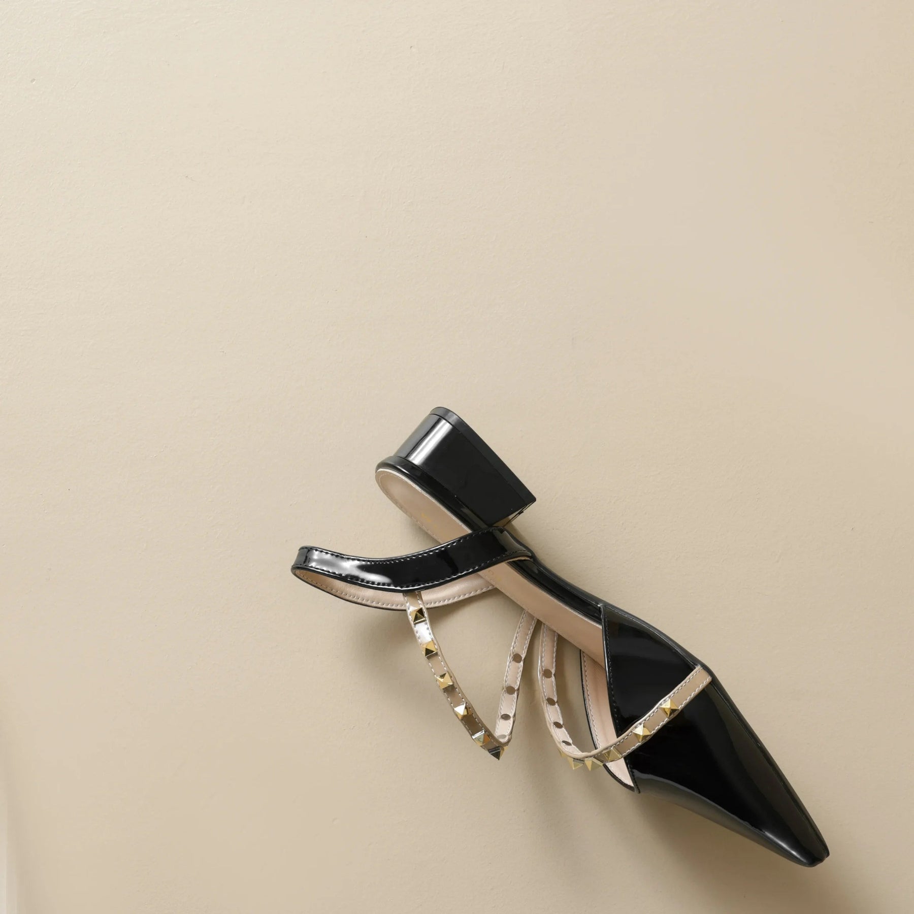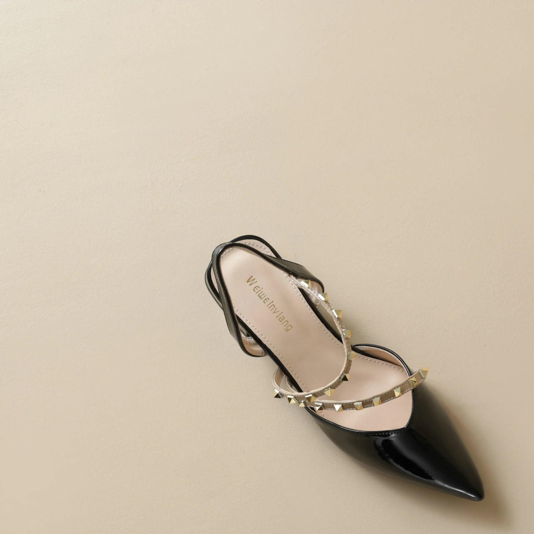The Liorah heels bring together elegance, comfort, and a touch of attitude — perfect for women who love refined footwear with standout details. Featuring a sleek pointed toe, glossy finish, and delicate studded accents, these flats elevate any outfit while staying comfortable enough for all-day wear.
